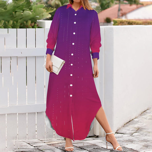 Violet Ombré Women's Button Long Sleeve Shirt Dress