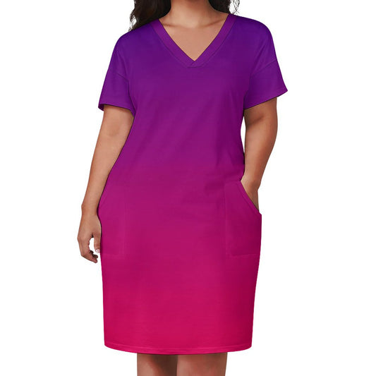 VIOLET OMBRÉ V-Neck Baggy Dress with Pocket