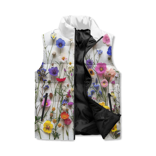 Fresh Flowers Unisex Lightweight Stand Collar Zip Up Puffer Vest