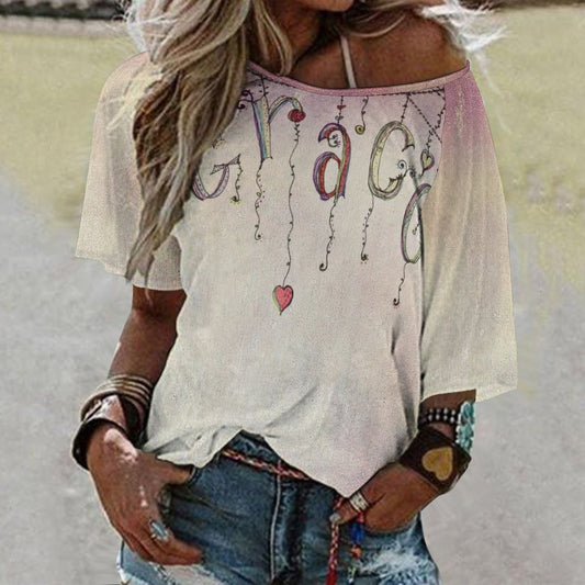 Be Grace Women’s Off the Shoulder Half-Sleeve T-shirt