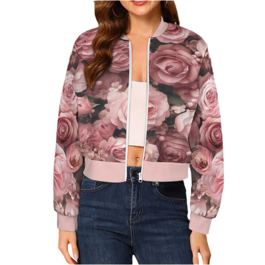 Just Plum Rosy (short waist) Casual Long Sleeve Zip-Up Bomber Jacket