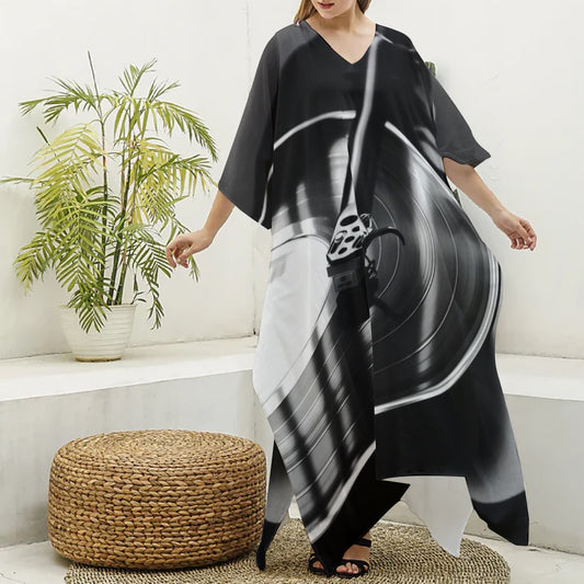 You Spin Me Women's Imitation Silk V-neck Kaftan Robe