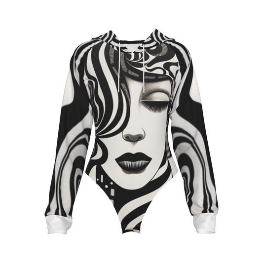 Monochrome Meditation Women's Raglan Sleeve Hooded Bodysuit
