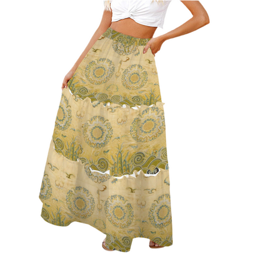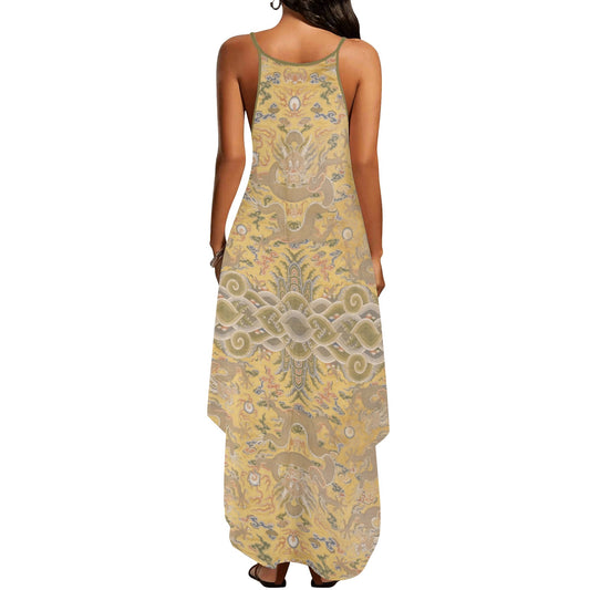 19th Century Chinese Yellow Imperial Print Women’s Elegant Sleeveless Evening Dress