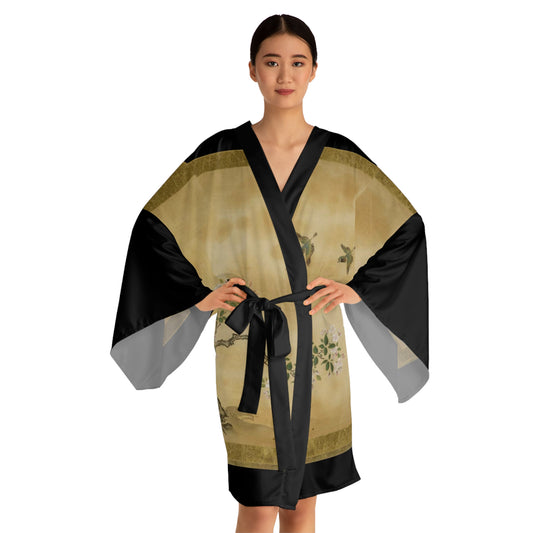 Early 19th Century Kimono, Pheasants amid Peonies-Authentic 19th Century Japanese Kimono Print on Long Sleeve Kimono Robe