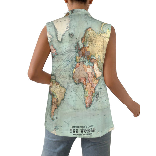 Bartholomew’s Chart of the World on Women Sleeveless Suit Vest Women Sleeveless Suit Vest