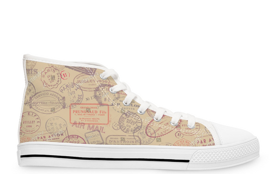 Antique Folding Fans of Art on Stylish Women's High Top Sneakers