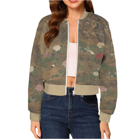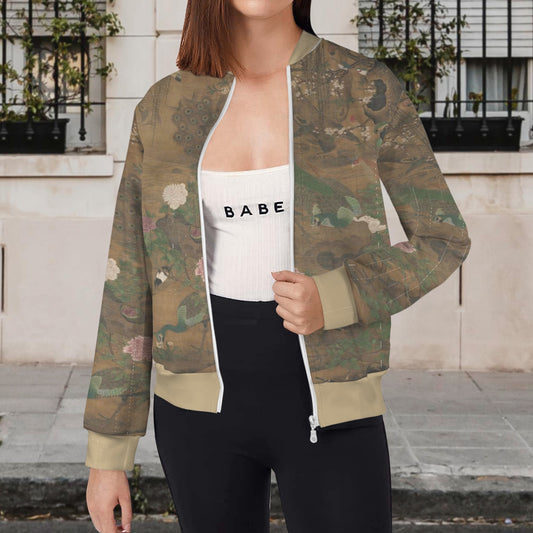 16th Century Painting by Yin Hong - Birds Gather under the Spring Willow Bomber Jacket