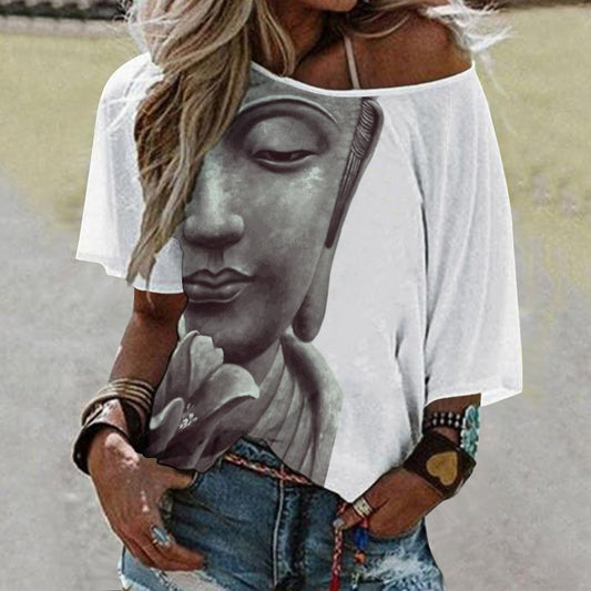 Buddha Flower Bliss Women’s Off the Shoulder Half-Sleeve T-shirt