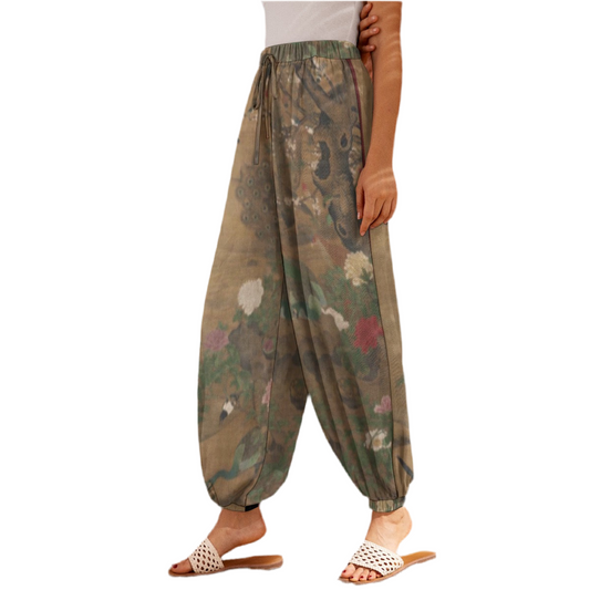 16th Century Chinese Painting by Yin Hong- Birds Gather under the Spring Willow Women’s Carrot Pants