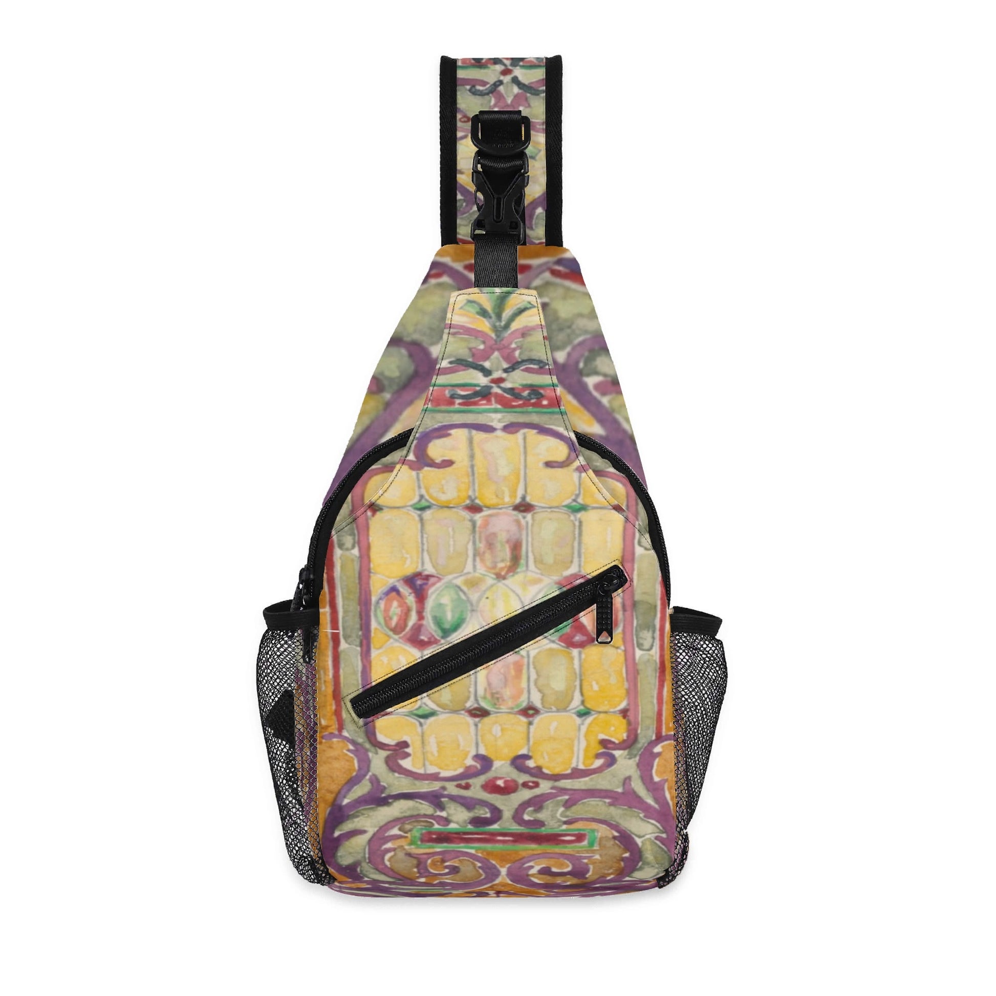 Watercolor Stained Glass design by Alice Cordelia Morse Chest Crossbody Bag with Adjustable Strap