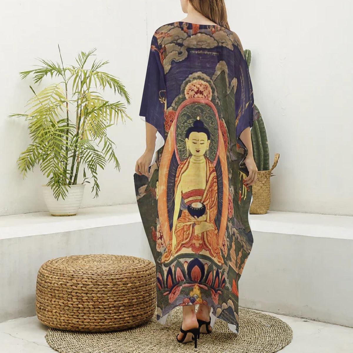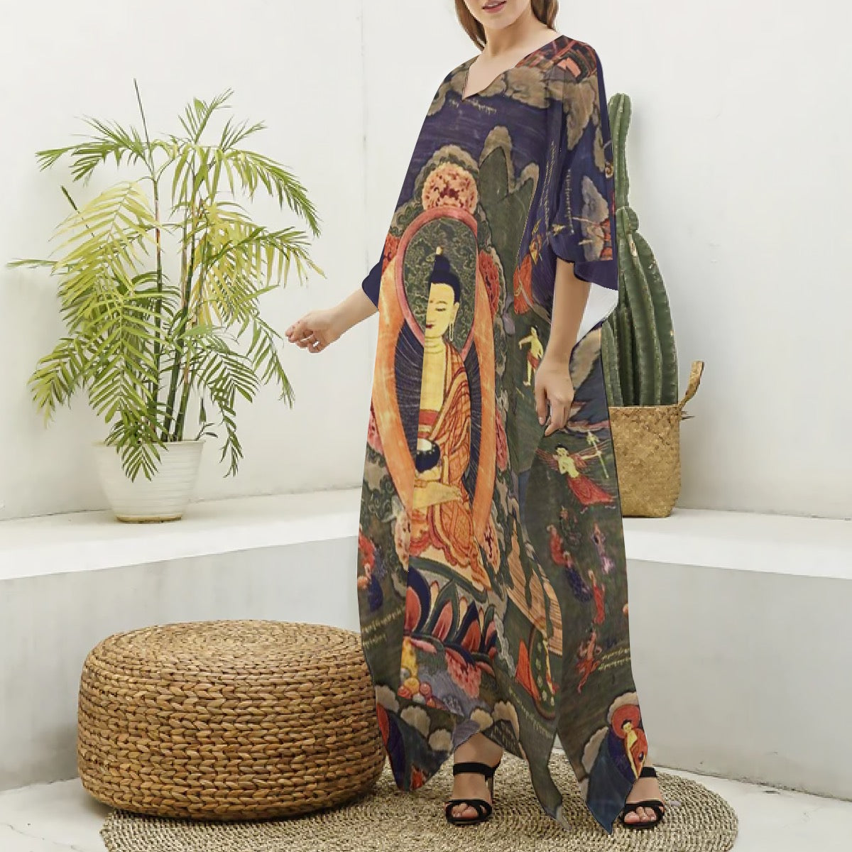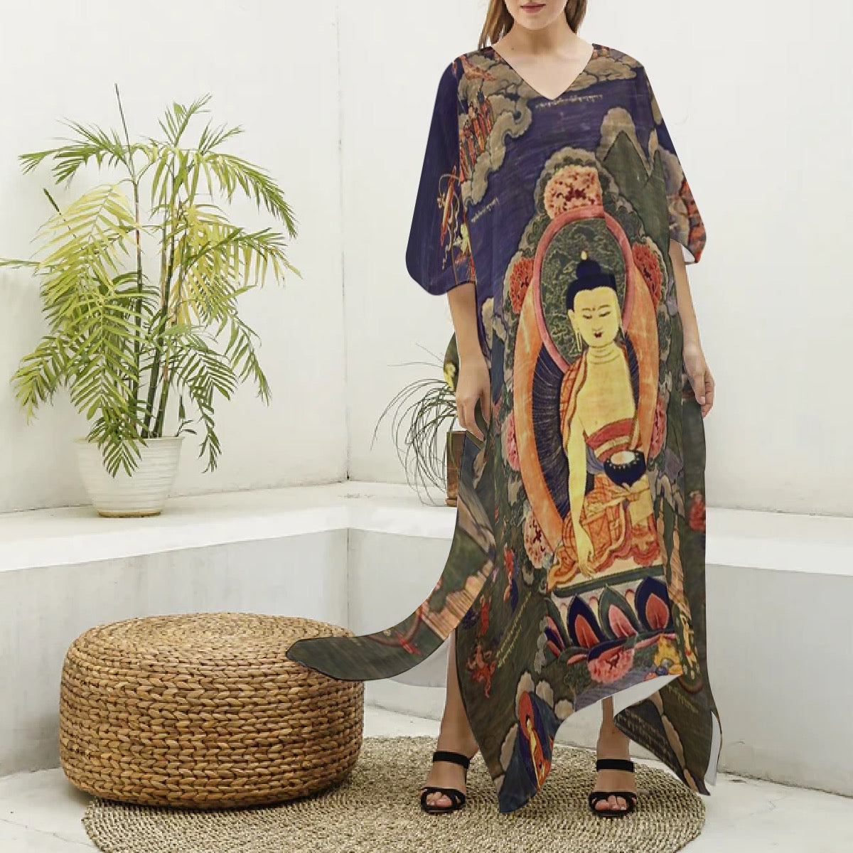 Tonpa Shenrab - Life Story 19th century (1800 - 1899), Women's Imitation Silk V-neck Kaftan Robe