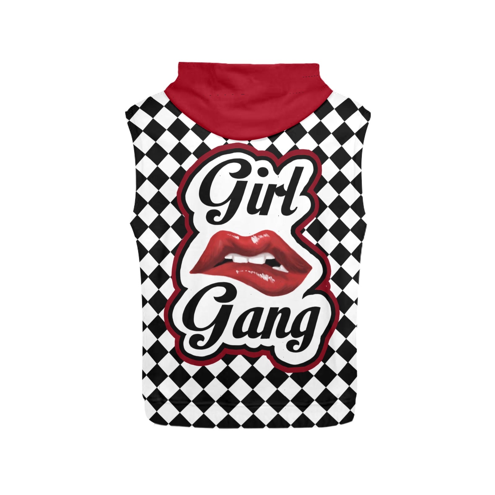“Girl Gang” (black & white) Women's All Over Print Sleeveless Hoodie