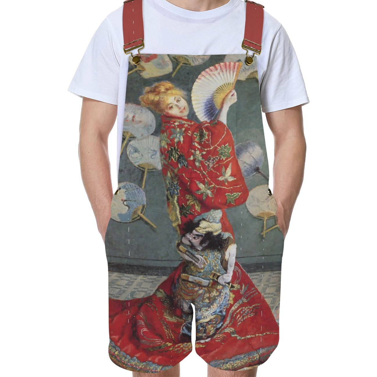 Monet’s La Japonaise, Madame Monet En Costume Japonais Wearing A Kimono (1876) on Unisex Suspender Jumpsuit
