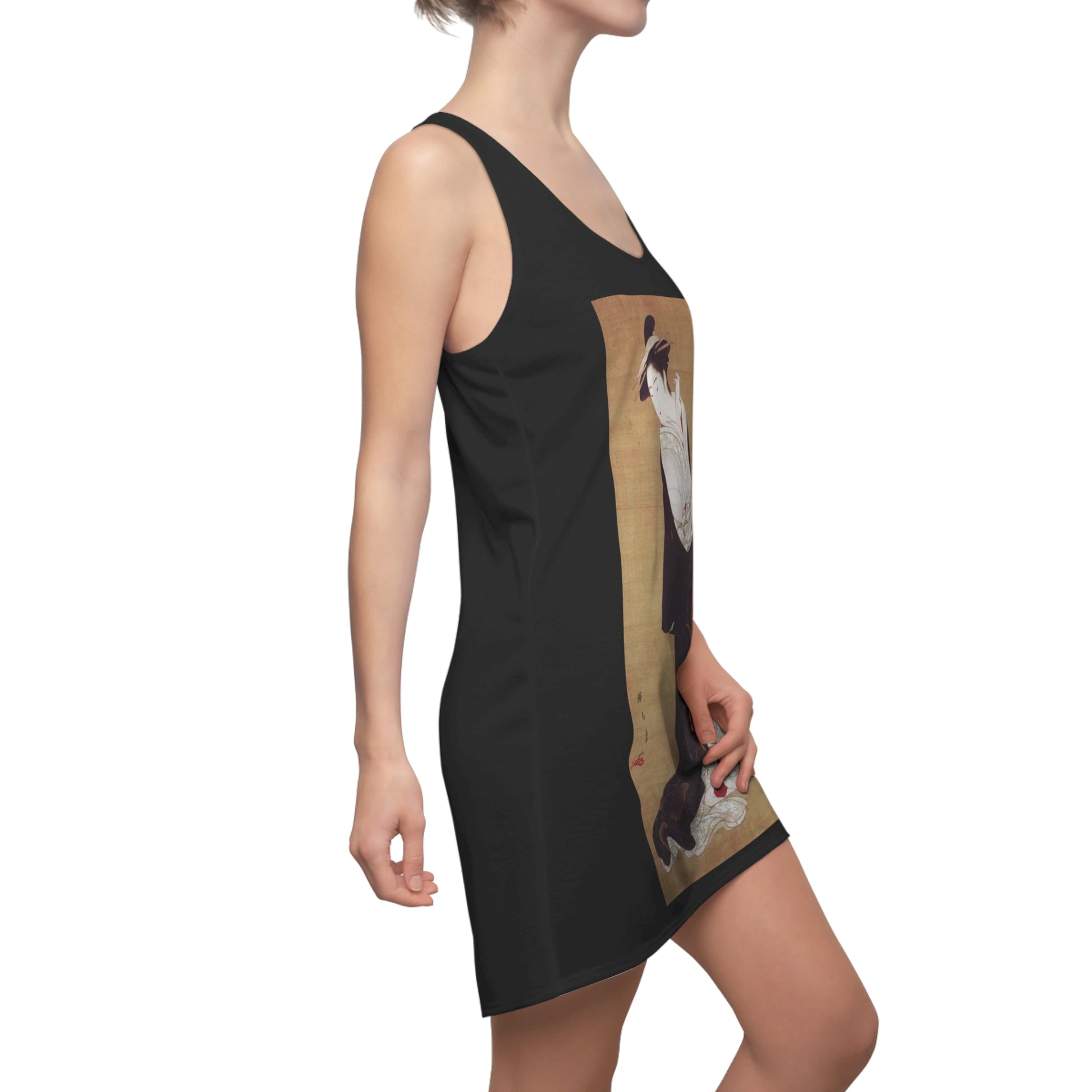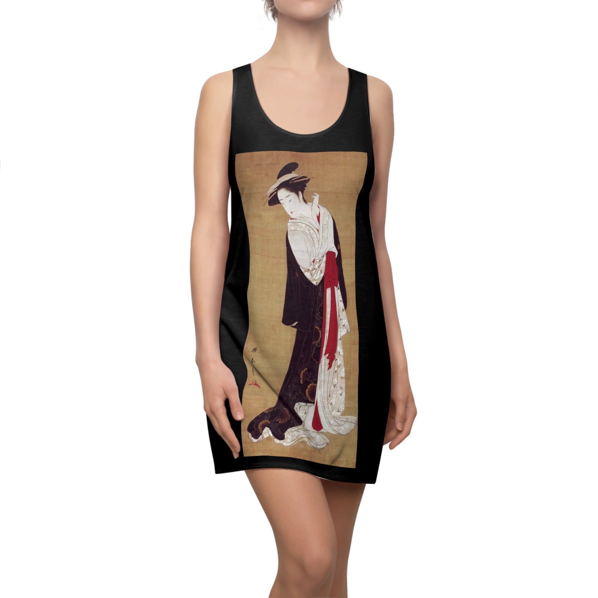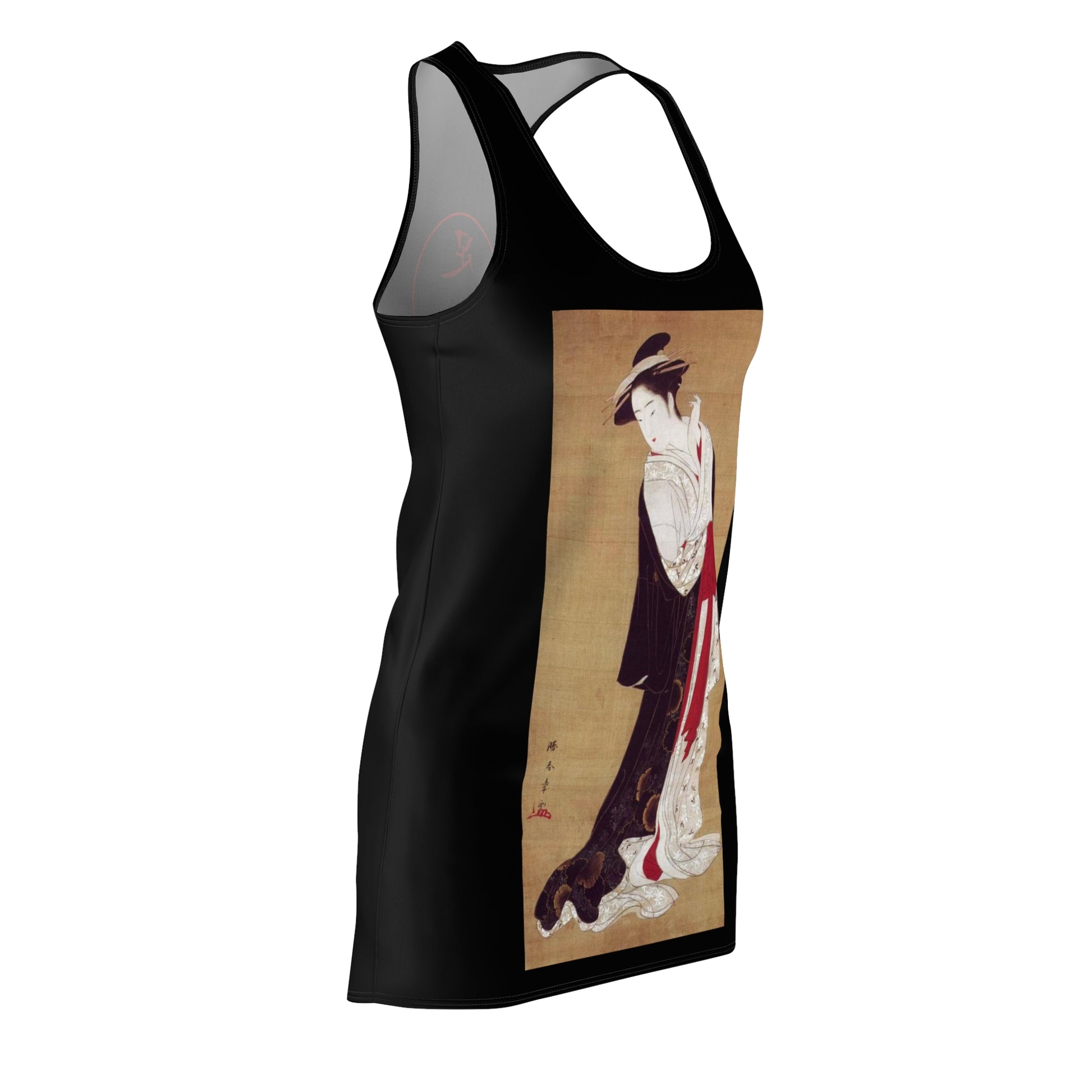 Katsukawa Shunsho: Standing Beauty, 18th century Japanese painting, Women's Cut & Sew Racerback Dress with creator’s Kangi signature