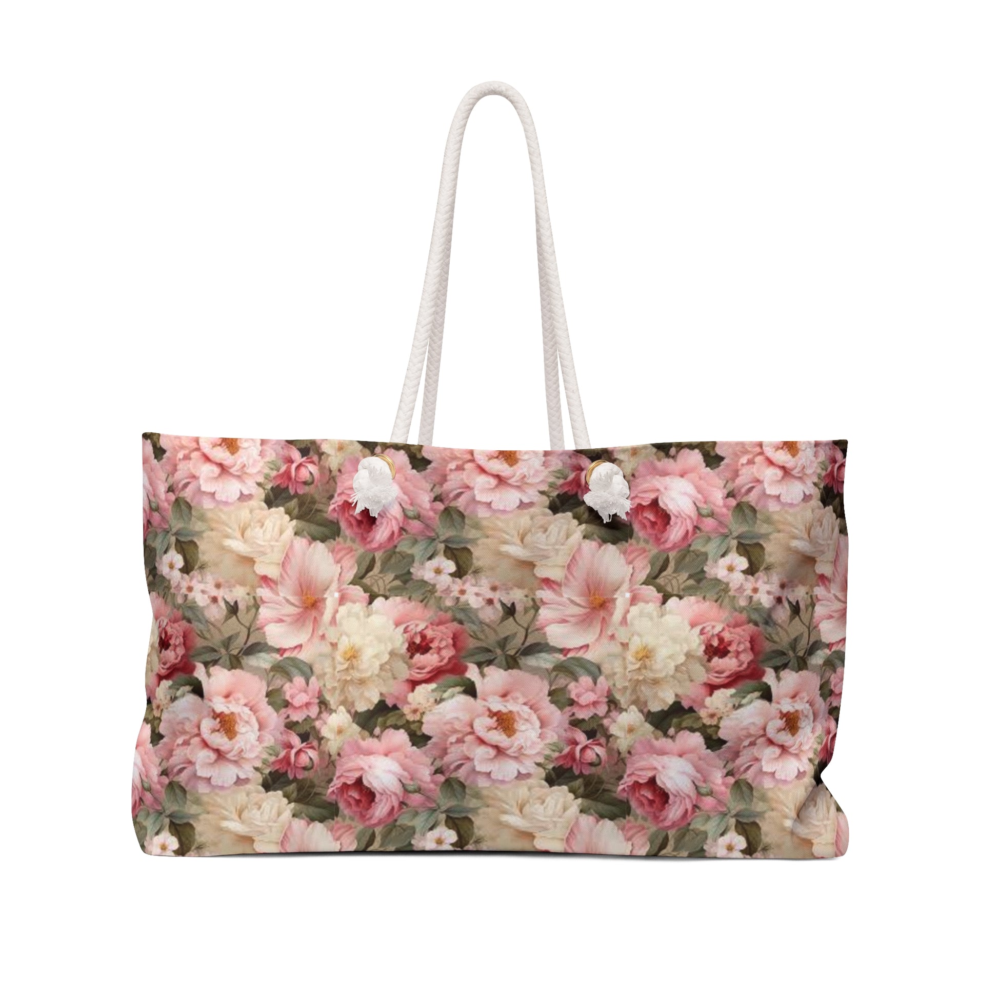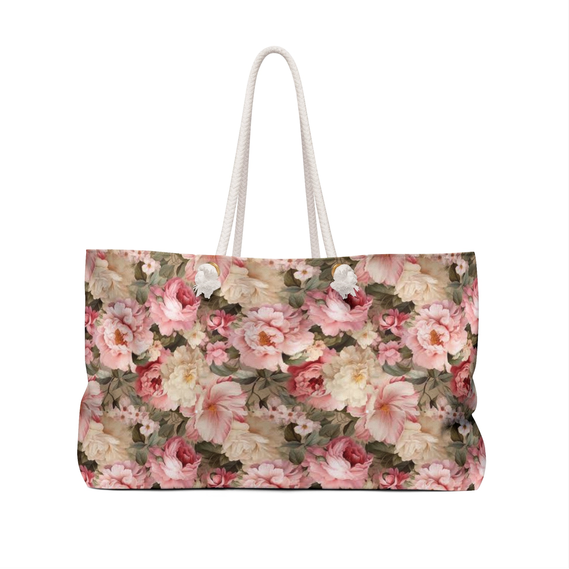 Our oversized Weekender Tote is perfect for your weekend at the beach or in town. The wide-mouthed, durable bag holds a generous amount of personal items and is easily held by its thick rope handles.