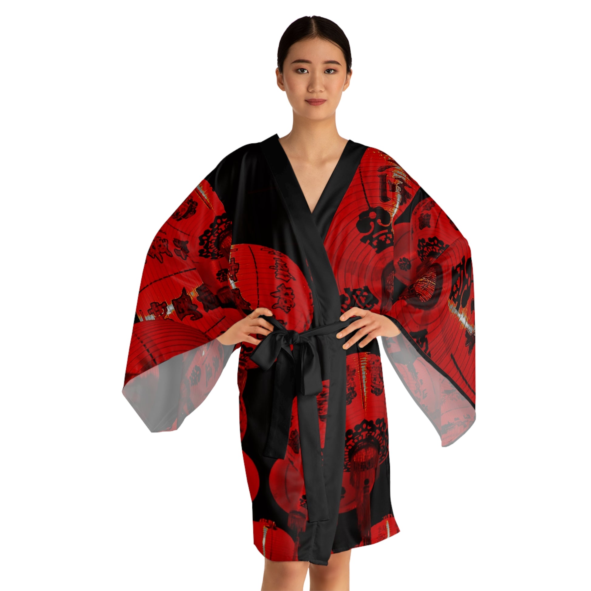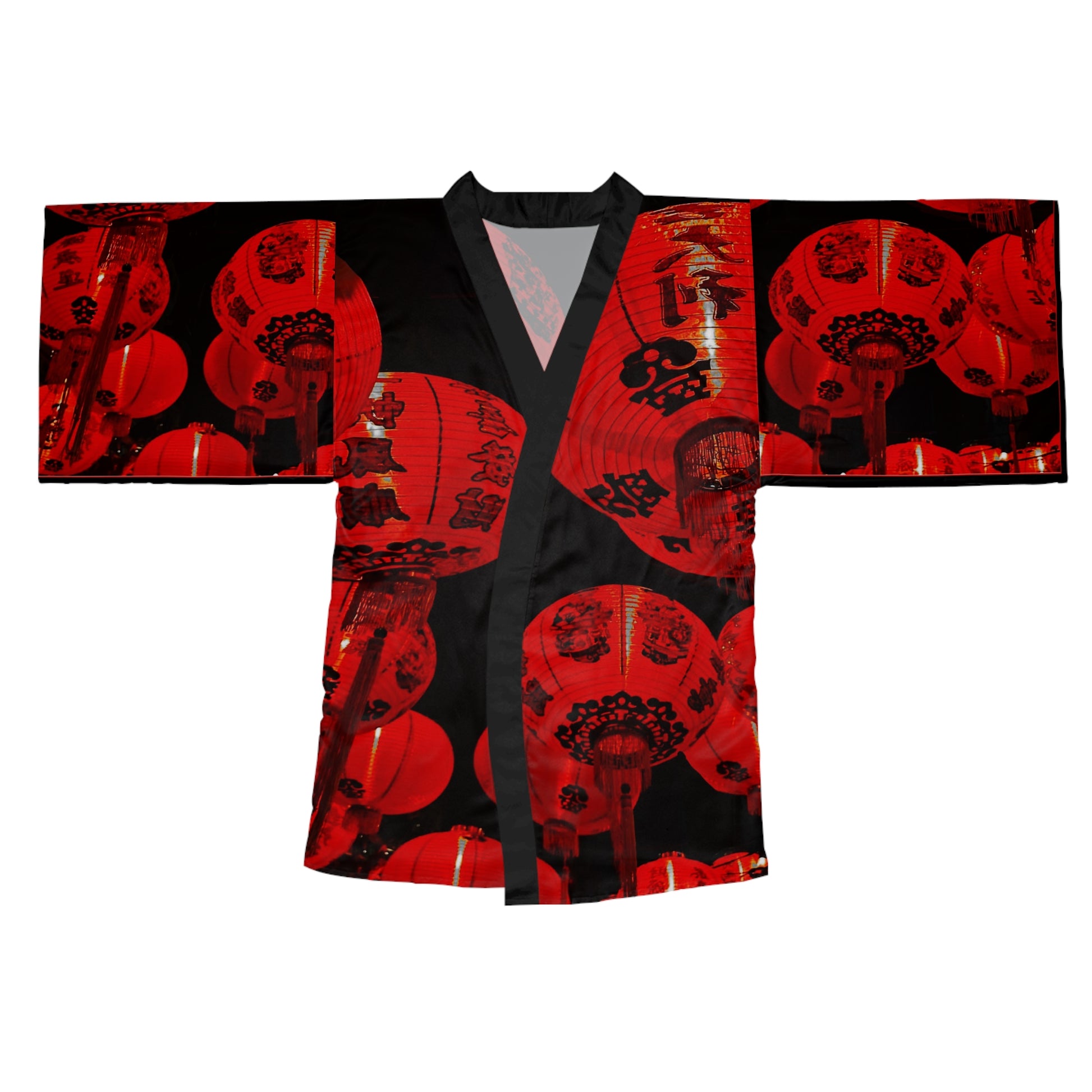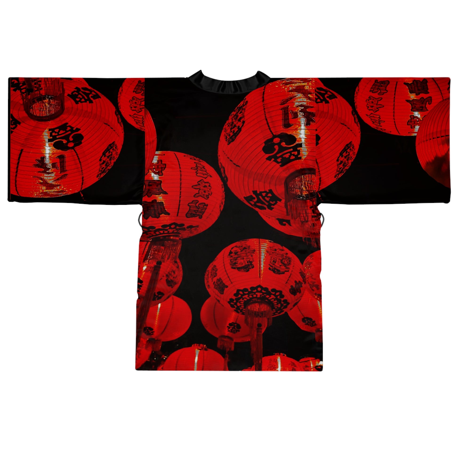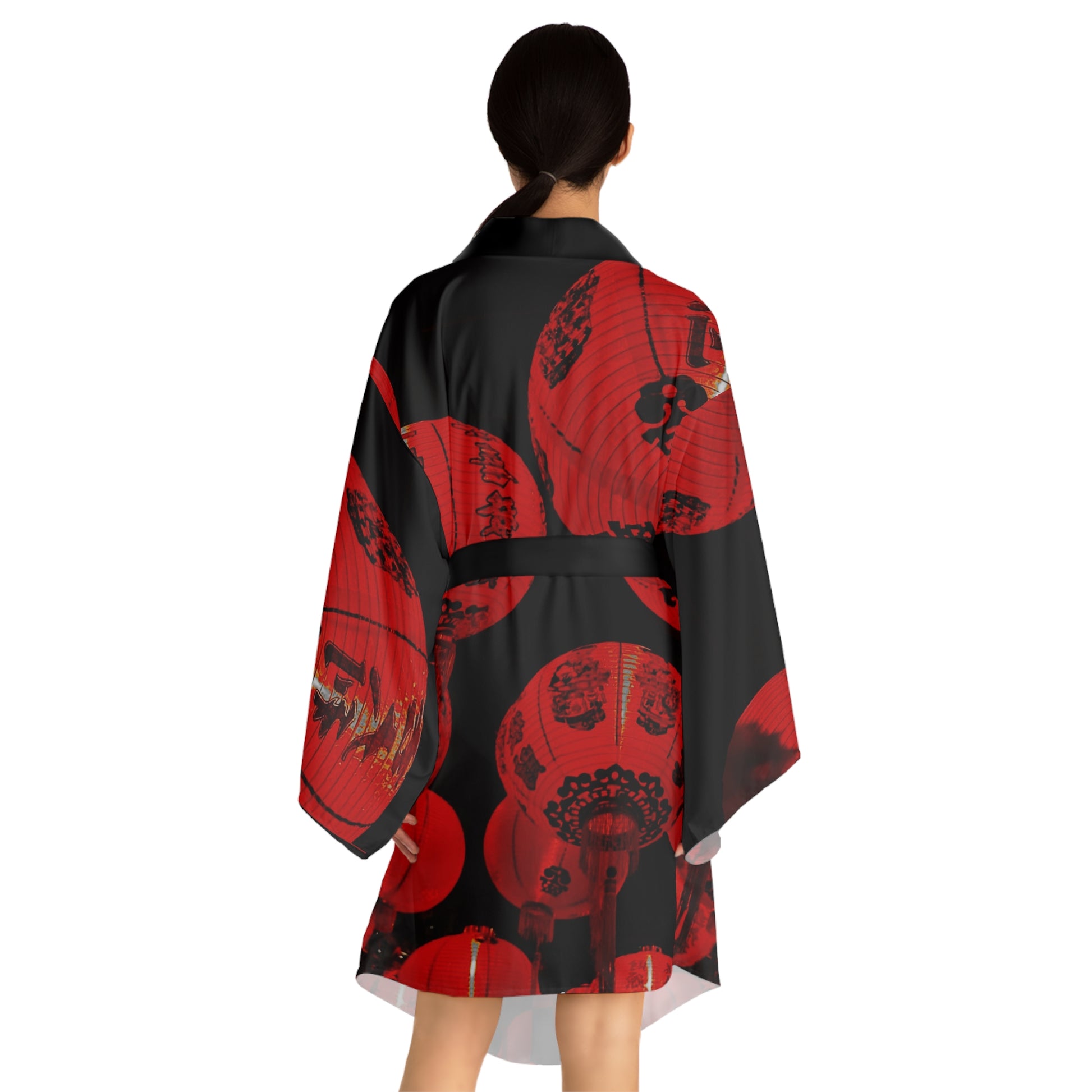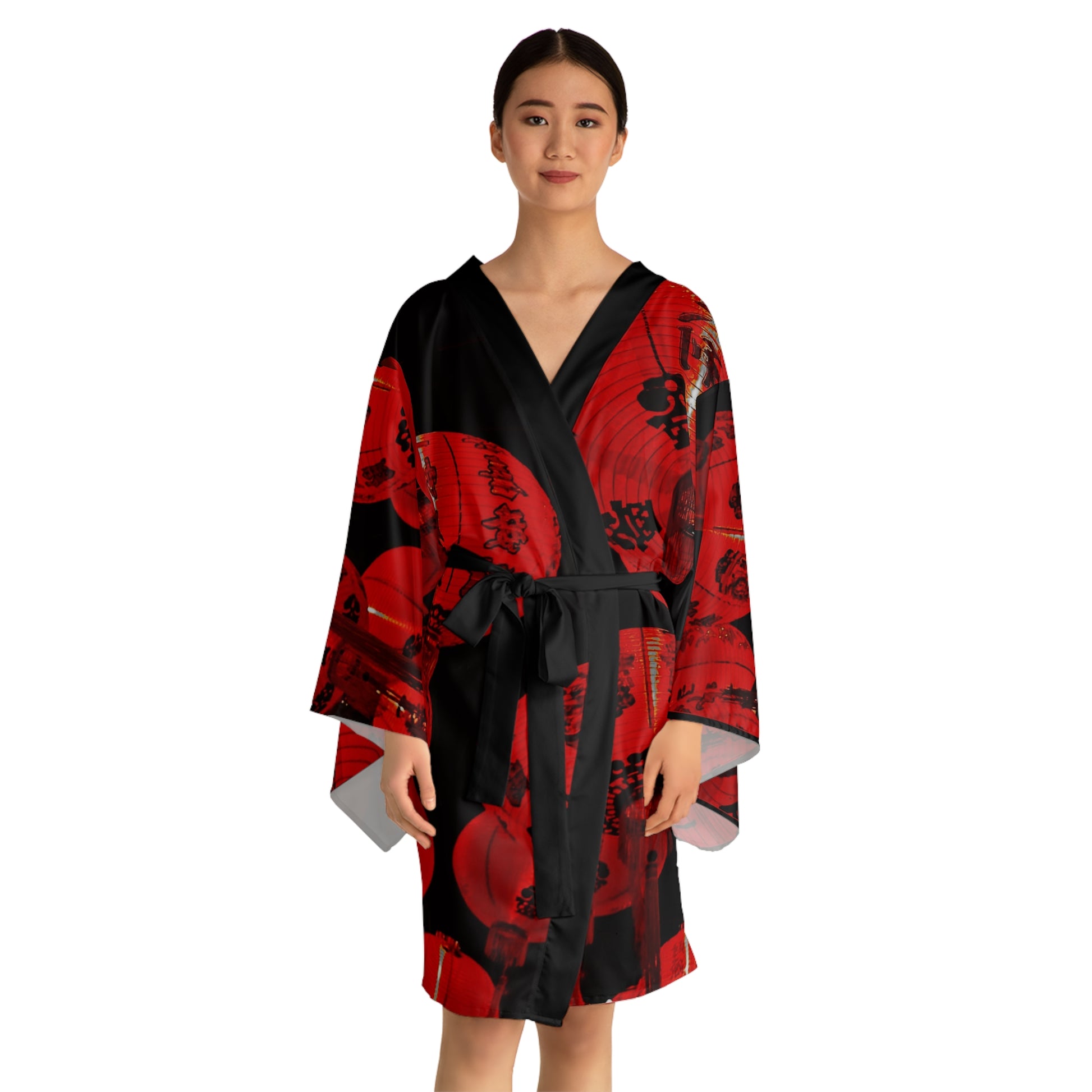 Red Chinese Lanterns Long Sleeve Kimono Robe