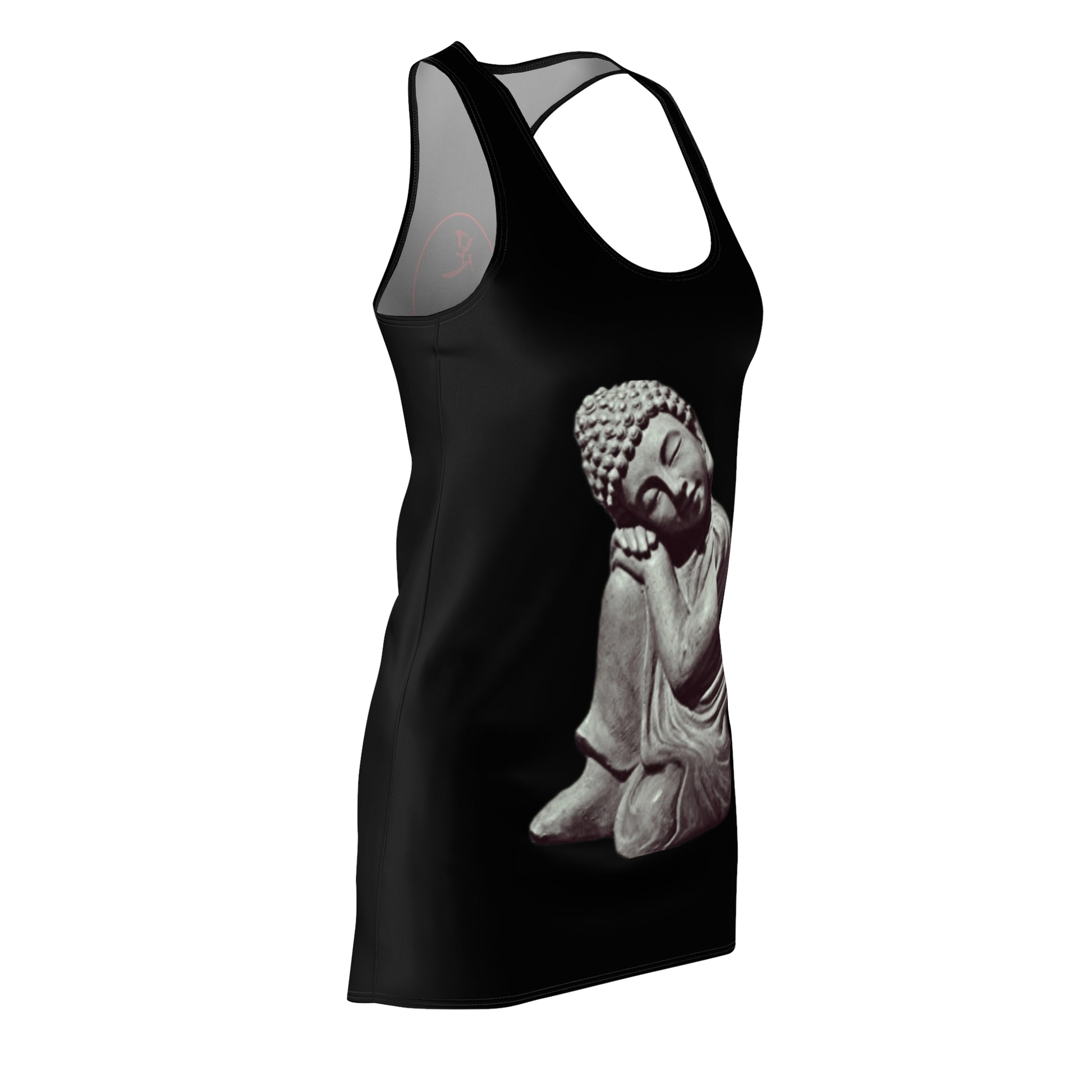 Resting Young Buddha Stone Statue Women's Cut & Sew Racerback Dress with creators Kangi signature