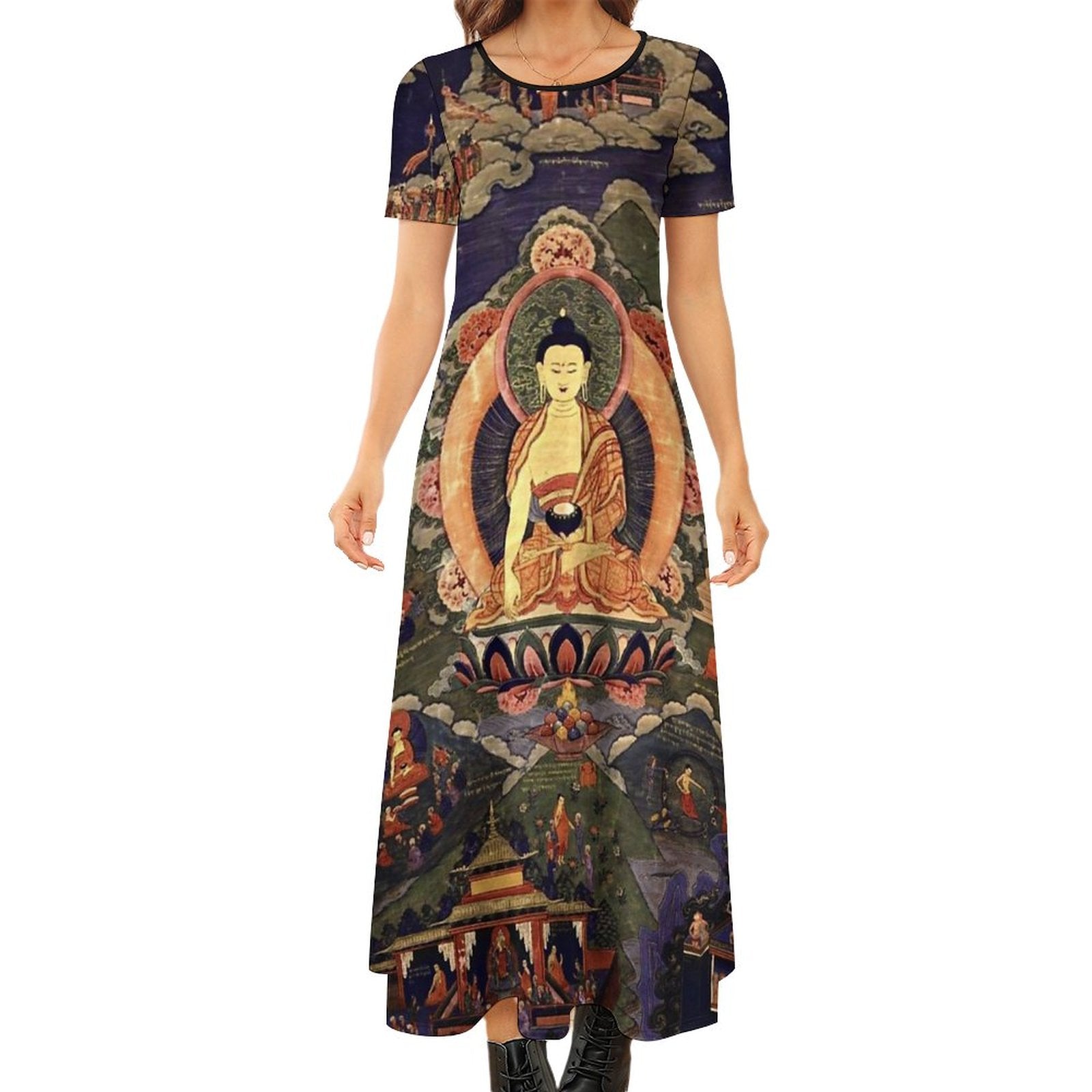 - Product Performance: The Round Neck Short Sleeve Dress covers your waist and hip for comfortable wearing, suitable for girls of different figures. Neither pilling and nor fading, the imitation cotton fabric is comfortable-to-wear and shrink-resistant for long-term wearing. The Round Neck Short Sleeve Dress is nice to match with a hat, a pair of sandals and necklace etc. With personalized patterns, the Round Neck Short Sleeve Dress makes you stylish, charming and confident. Excellent for your leisure time, this classic-style Round Neck Short Sleeve Dress is never out of date and can stand the test of time.