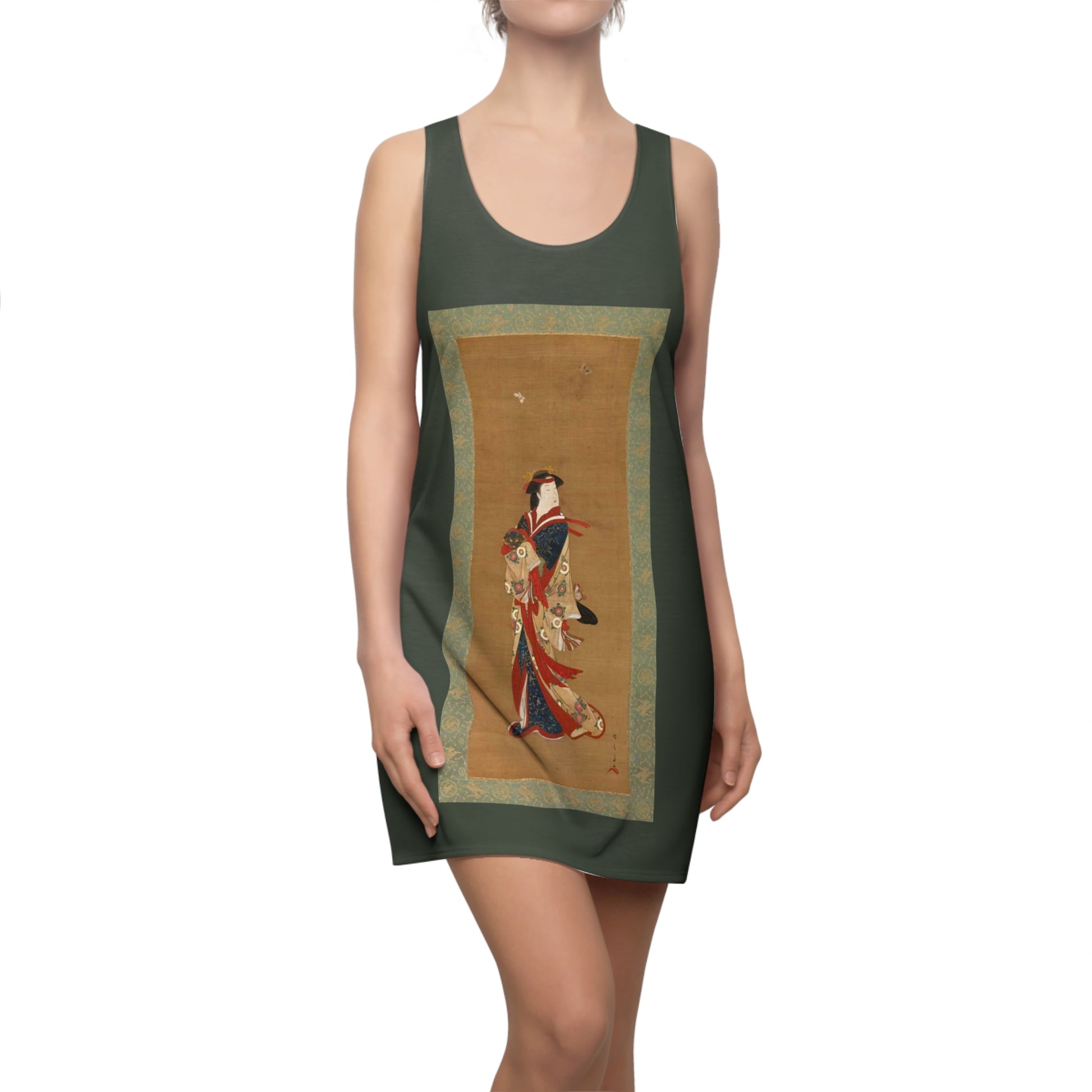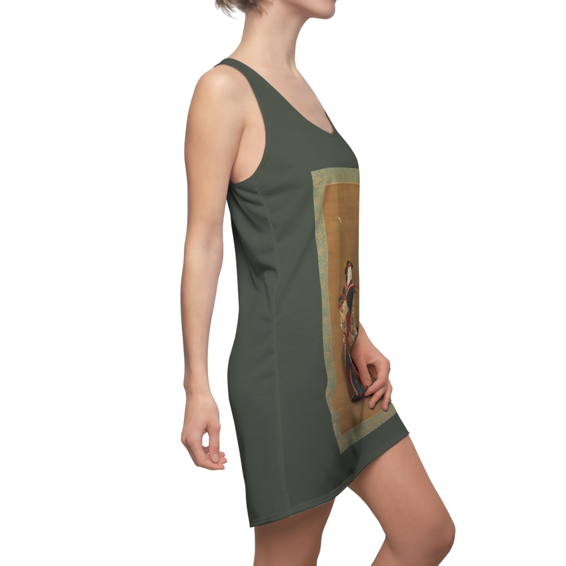 Shunsho Katsukawa, Beauty with Butterflies, hanging scroll, 18th century Japanese art, Women's Cut & Sew Racerback Dress